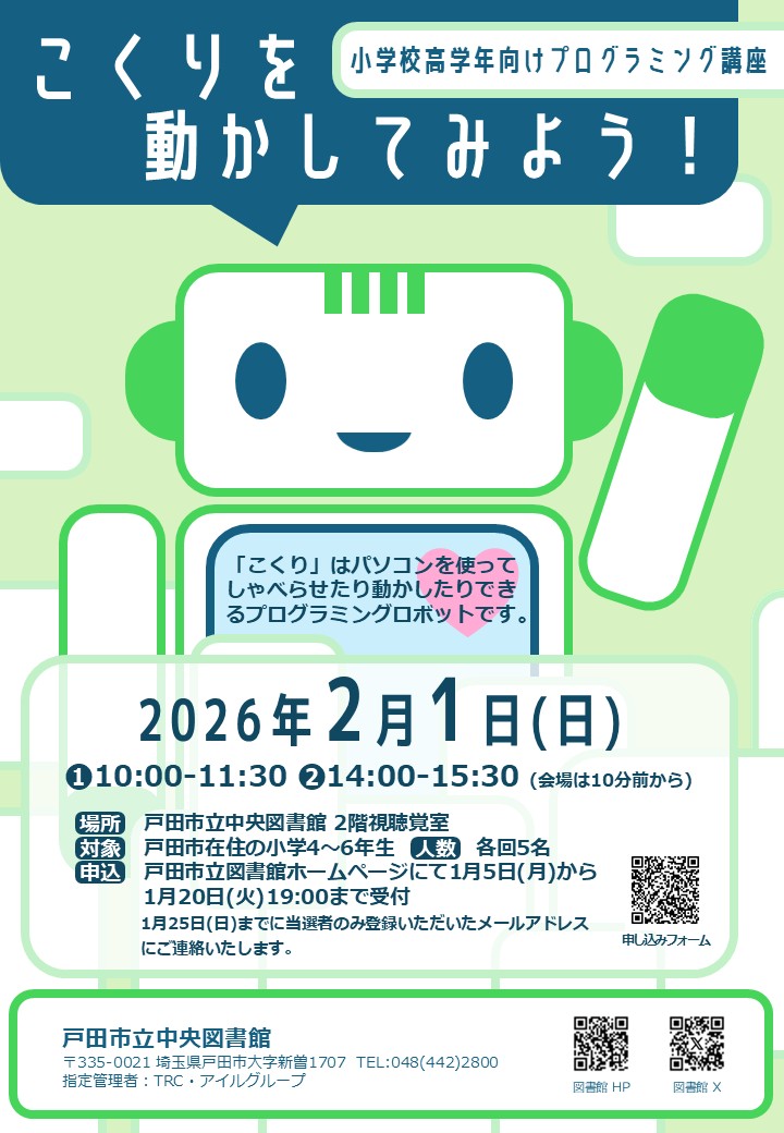 小学校高学年向け プログラミング講座「こくりを動かしてみよう!」 |